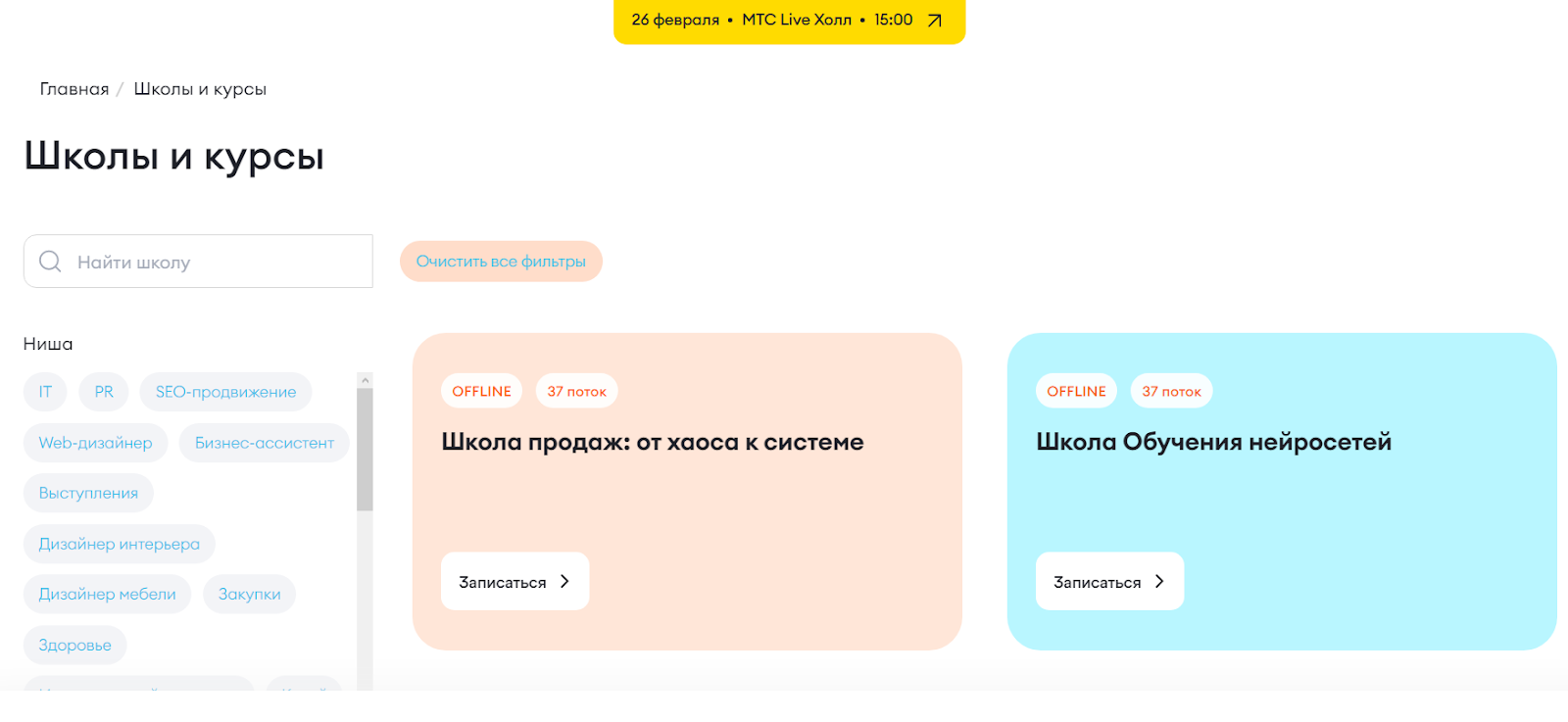 Пользователям предложены различные образовательные услуги, включая: