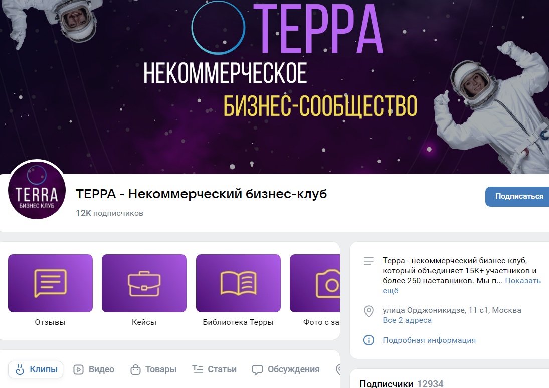 На сообщество подписано 12k пользователей. Здесь опубликованы новые события клуба, информация об услугах. Ранее у проекта была группа terra_club_msk.
