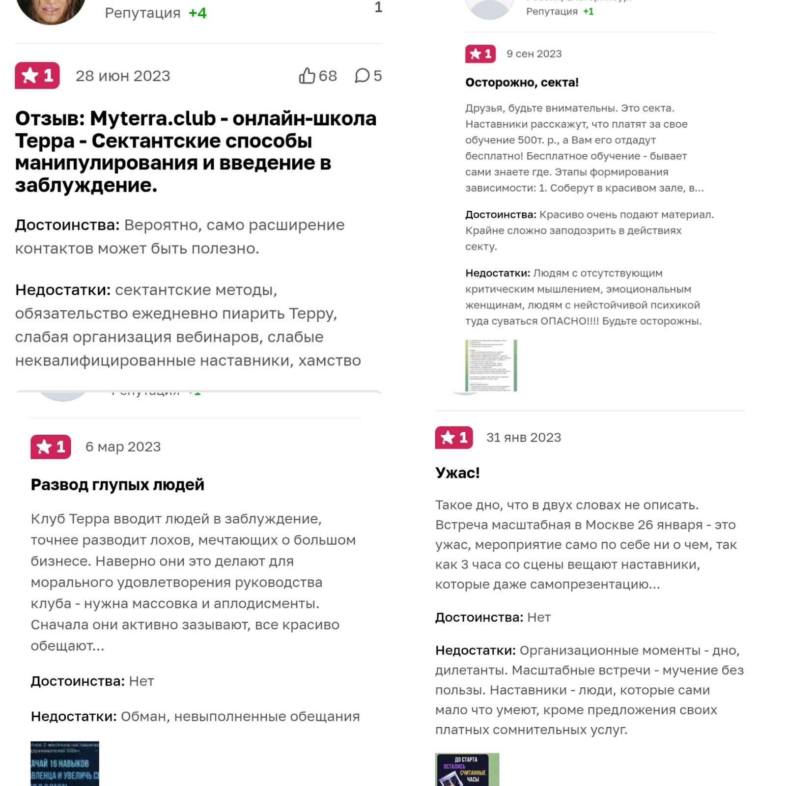 Во время разоблачения Terra мы нашли отзывы о том, что наставники Myterra Club ведут себя непрофессионально по отношению к ученикам, и часто материалы преподносятся некачественно.