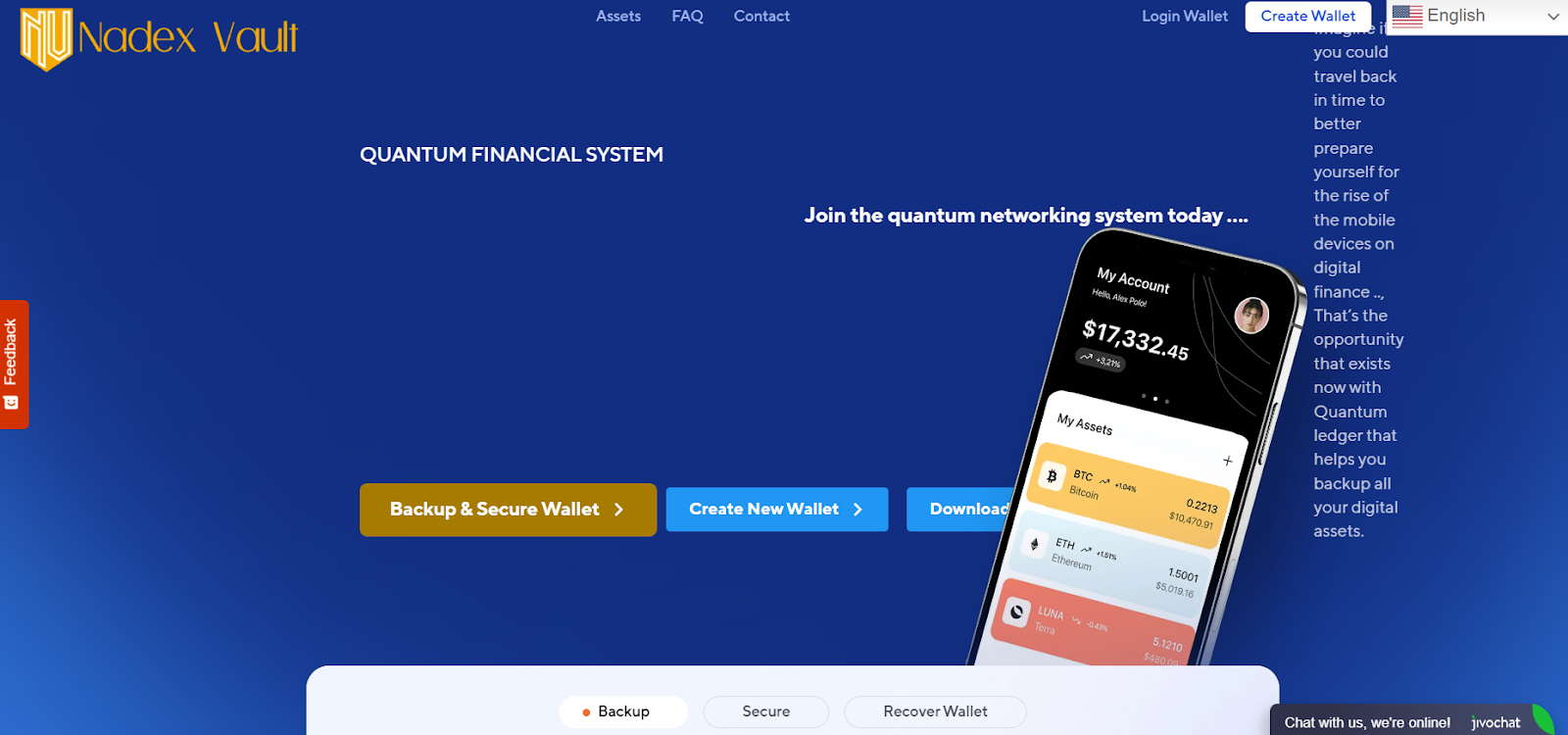 Отзывы о криптокошельке Nadexvault org есть только непосредственно на самом сайте проекта. Авторы криптокошелька акцентируют внимание на таких особенностях сервиса как резервное копирование, высокий уровень защиты активов, и присутствие возможности восстановить кошелек благодаря отправке ресурсу своей зашифрованной резервной копии. Далее в ходе нашего обзора выясним соответствуют ли заявления о надежности проекта действительности и стоит ли обращаться к услугам сервиса.