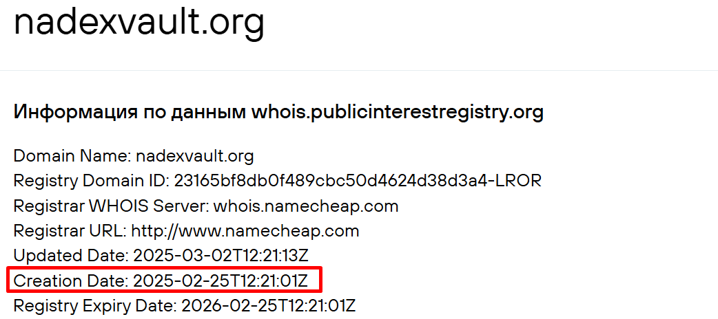Доменное имя сайта было зарегистрировано в феврале 2025 года, на момент обзора площадка функционирует четыре месяца.