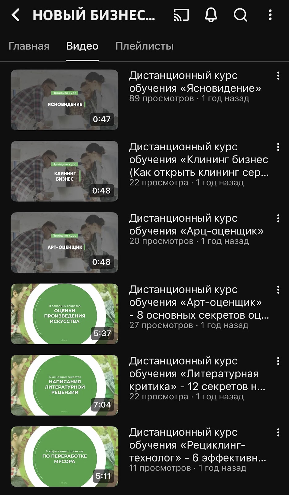 У проекта есть свой Ютуб-канал. Все ролики — это краткое описание курсов. Отметим, что количество просмотров минимальное, а это говорит о мизерной популярности платформы в интернете.