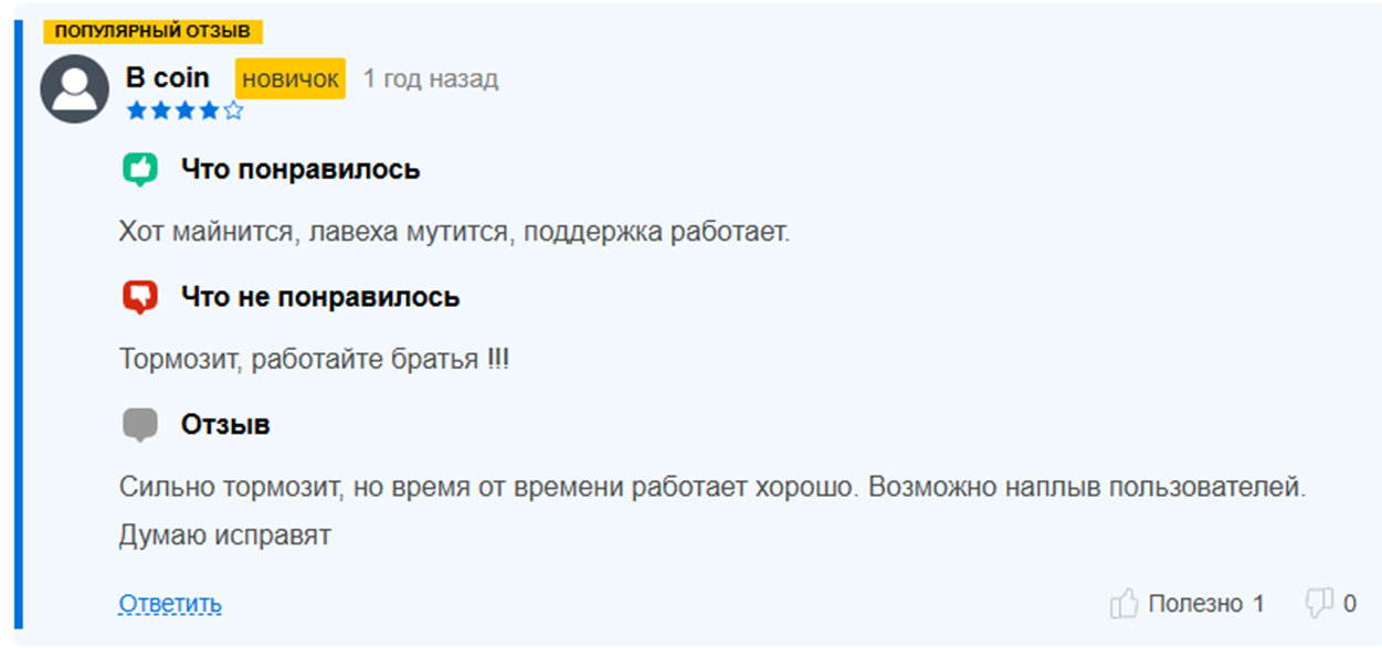 Есть мнения, авторы которых считают, что кошелек нуждается в доработке и техподдержка работает не очень хорошо. Некоторые отмечают, что транзакции проходят очень медленно, особенно в момент пиковой нагрузки на софт.