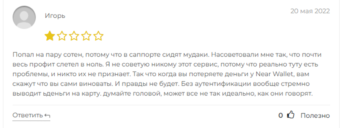 Кошелек Near mobile работает легально и действительно стремится к прозрачности. Права на него принадлежат известной компании, которая успела зарекомендовать себя. Но все же софт еще «сырой» и имеет немало негативных отзывов, поэтому риск заморозки денег все же имеется. Советуем перед использованием внимательно взвесить все за и против и изучить детально особенности кошелька.
