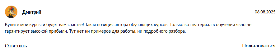 По итогам оценки школы Нейро Тредс от Ольги Гонсалес, которая продает курсы по заработку на арбитраже трафика, можно выделить следующие минусы: