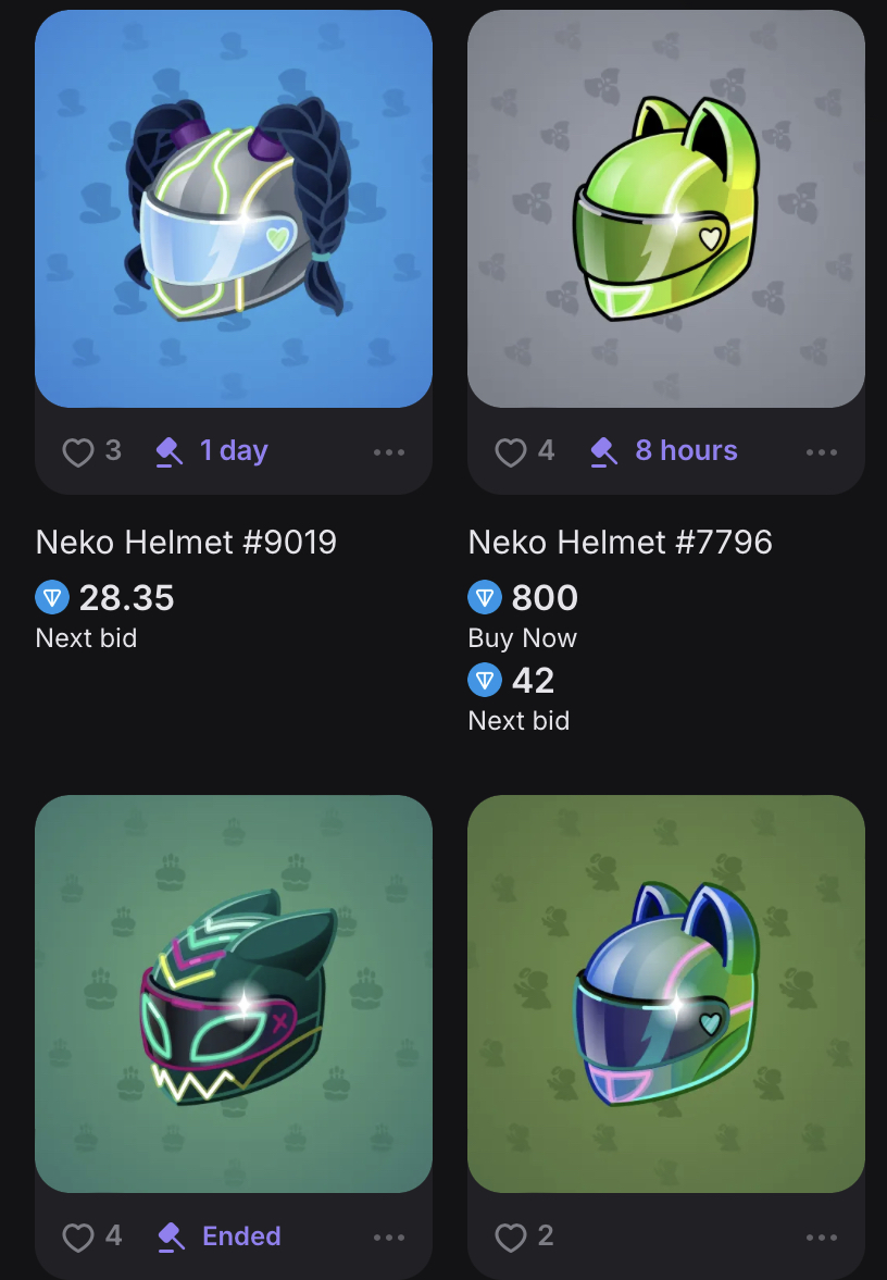 Уникальность Неко Хелмет в том, что на данной серии NFT изображены самые разные шлемы.