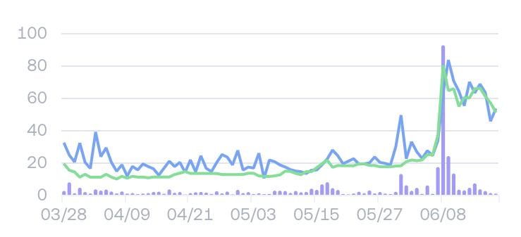 Рассмотрим график цены и объемов Neko Helmet Telegram в соотношении с количеством реализованных активов: