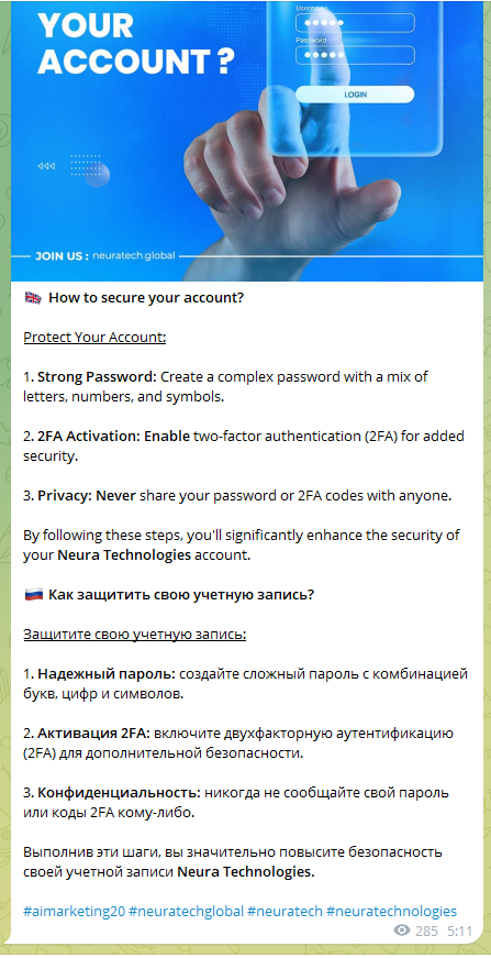 - еще несколько страниц Neuratech Global Ai Marketing в Телеграме;