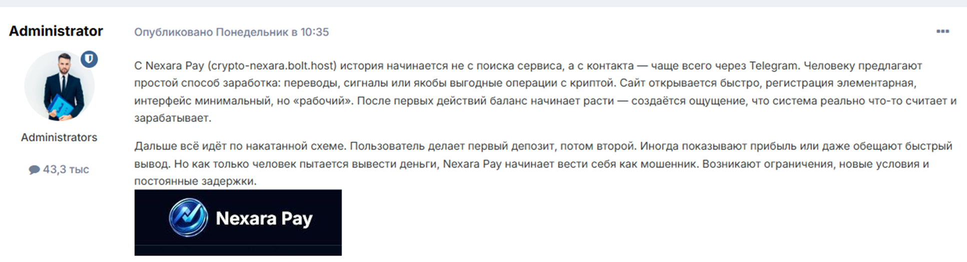 Нам удалось найти в сети первые обзоры на Nexara pay. И их авторы с подозрением относятся к данному проекту, считая его мошенническим.
