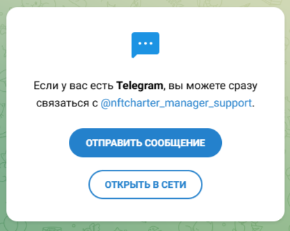 Проблемы, связанные с переводами, в обменнике «НфтЧартер» решает компетентная служба поддержки, связаться с которой можно только в Телеграме. Сервис не предоставляет клиентам других способов связи.