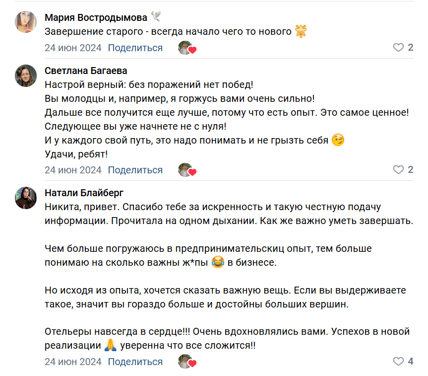 В публикациях страницы автор рассказывает о своих неудачах подписчикам и закрытии управляющей компании Travelto. В качестве причин о называет следующие: