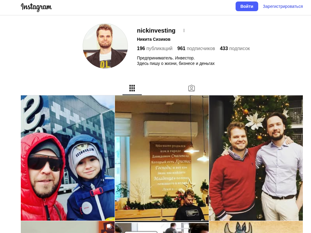 В Instagram его страничка находится по адресу @nickinvesting. В био указано «предприниматель, инвестор. Пишу о жизни, бизнесе, деньгах». Подписчиков чуть меньше тысячи, лайков у постов по 100-1700, комментариев по пару десятков. Содержание — фото личной жизни, немного видео по инвестициям.