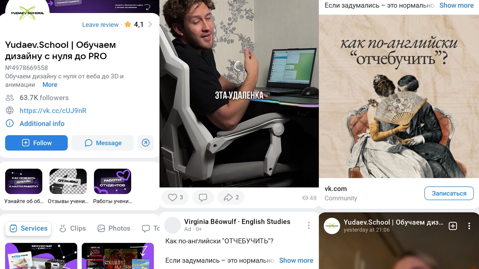 В ленте сообщества можно ознакомиться с туториалами по монтажу. Админ регулярно публикует информацию об актуальном обучении. Также в сообществе публикуются отзывы об yudaevschool ru. Регулярно аудиторию уведомляют о предстоящих прямых эфирах, в которых разбираются особенности профессии дизайнера. Чаще всего доступ открыт для всех.Новые посты здесь появляются через каждые 2-3 дня, и крайний раз появлялся 30 марта 2026 года.