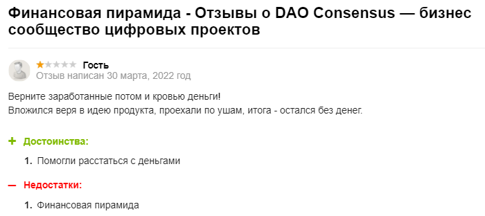 Негатив тоже есть. Причем у отрицательных отзывов везде один и тот же момент — обвинения в том, что это пирамида.