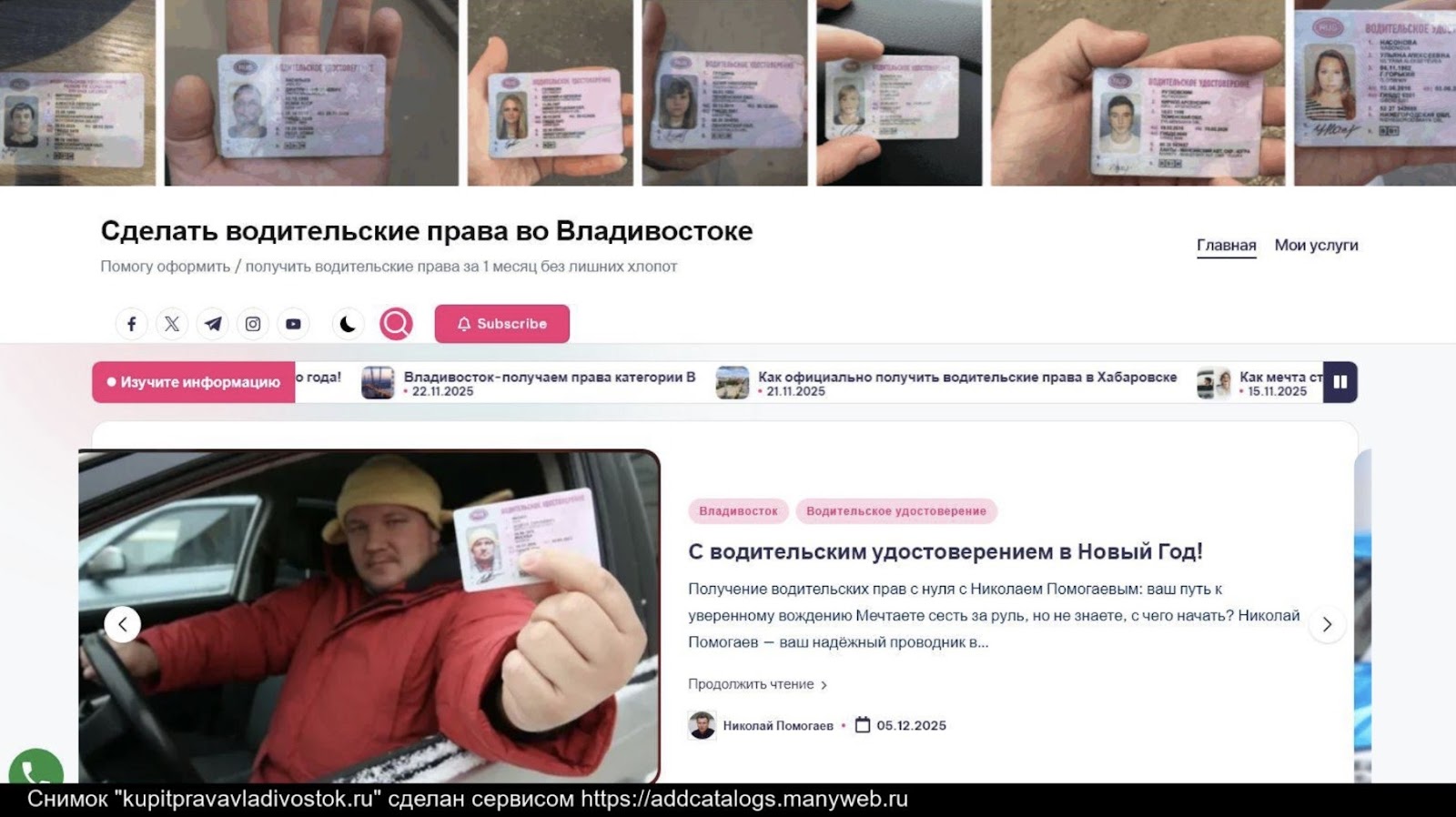 Обзор Телеграм канала Николай Помогаев Права 125: условия, легальна ли работа, отзывы тех, кто покупал услугу на Kupitpravavladivostok Ru