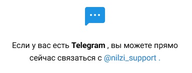Чат для получения обратной связи в Телеграме называется Nilzi Support. Однако, при переходе в аккаунт становится понятно, что его попросту не существует.