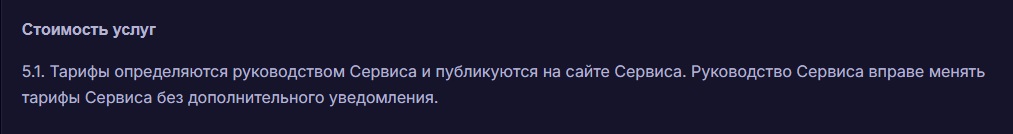 Что касается стоимости предоставляемых услуг, то здесь есть большая неопределенность. Ведь обменник не публикует практически никаких цифр. Более того, судя по пунктам пользовательского соглашения, администрация платформы может менять тарифы даже без уведомления клиентов. Таким образом, деньги посетителей сайта находятся в опасности.