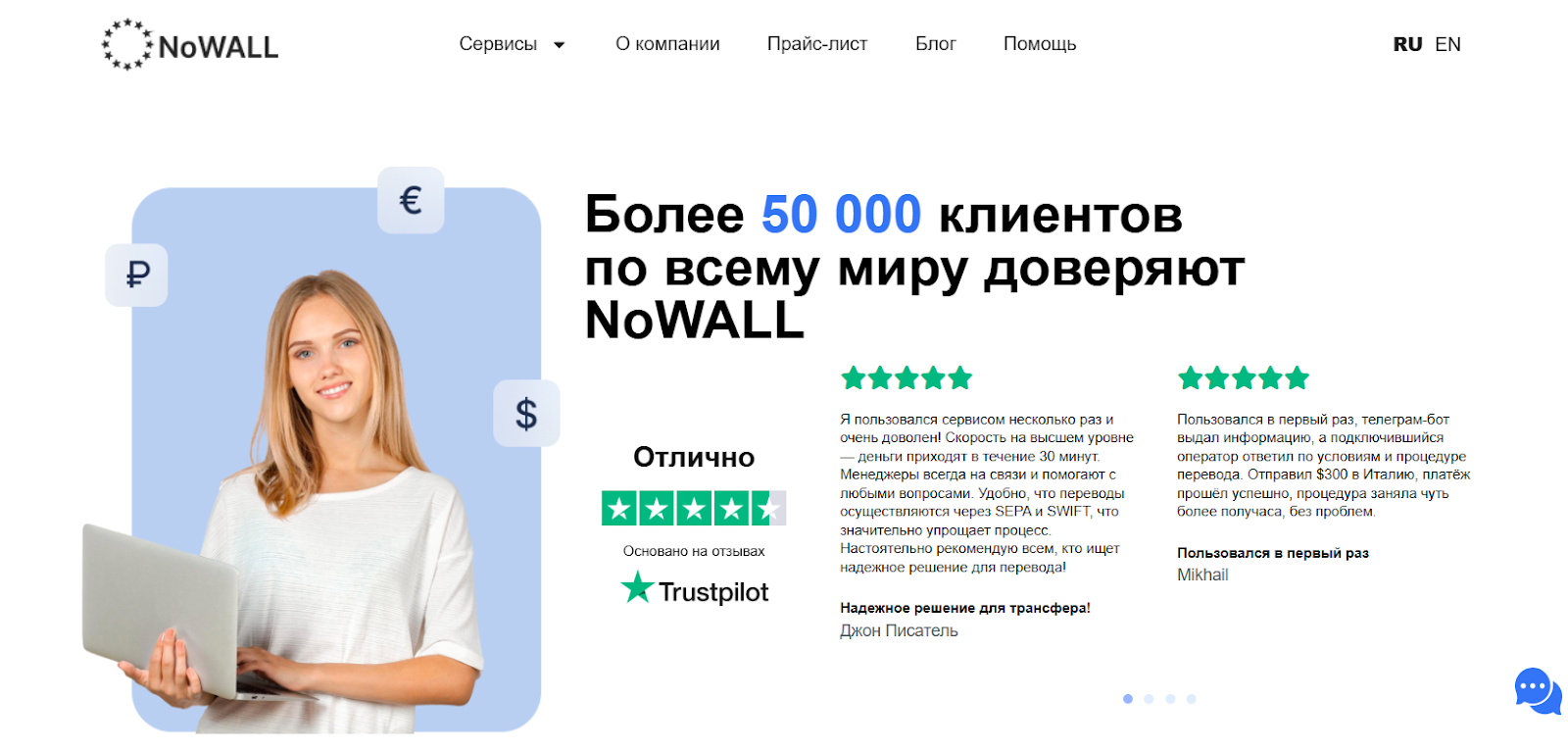 NoWALL — международный сервис денежных переводов и платежных решений, что подтверждают отзывы клиентов.