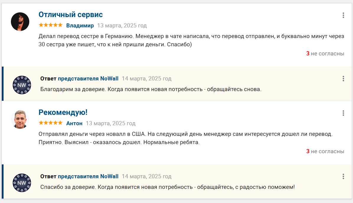 nowall отзывы денежные переводы