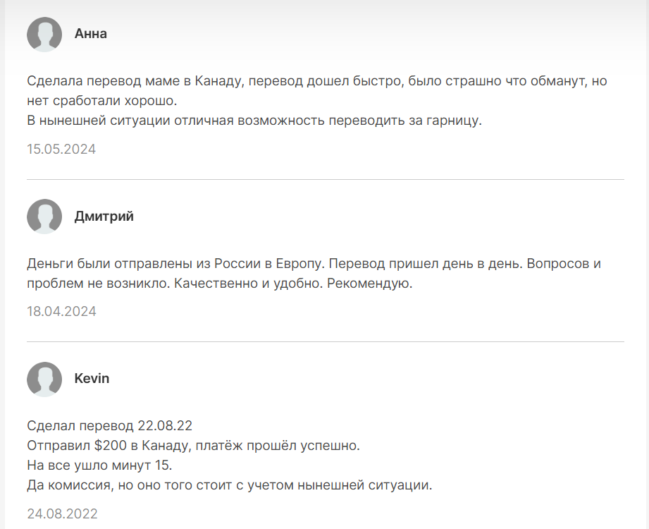 Разбор комментариев и отзывов в независимых источниках показывает следующее. Клиенты благодарят за скорость, поддержку и помощь в сложных сценариях (оплата учебы, срочные переводы в ЕС/США), отмечают удобство европейских виртуальных карт и функциональность для выплат фрилансерам.