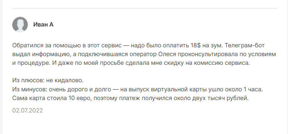 Не обошлось и без минусов: комиссии высокие, особенно на мелкие суммы, выпуск виртуальной карты занимает около часа, а сама карта стоит десять евро, так что платеж получается ощутимо дороже.