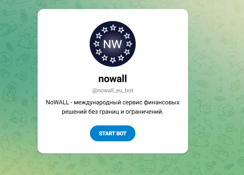 • Поддержка клиентов в ТГ и через nowall eu bot, возможность оставить заявку онлайн.