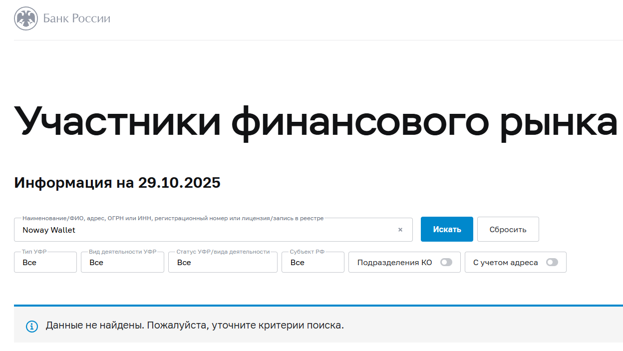 В любом случае, Noway Wallet не является участником финансового рынка, что говорит о работе организации вне закона и возможных нарушениях.