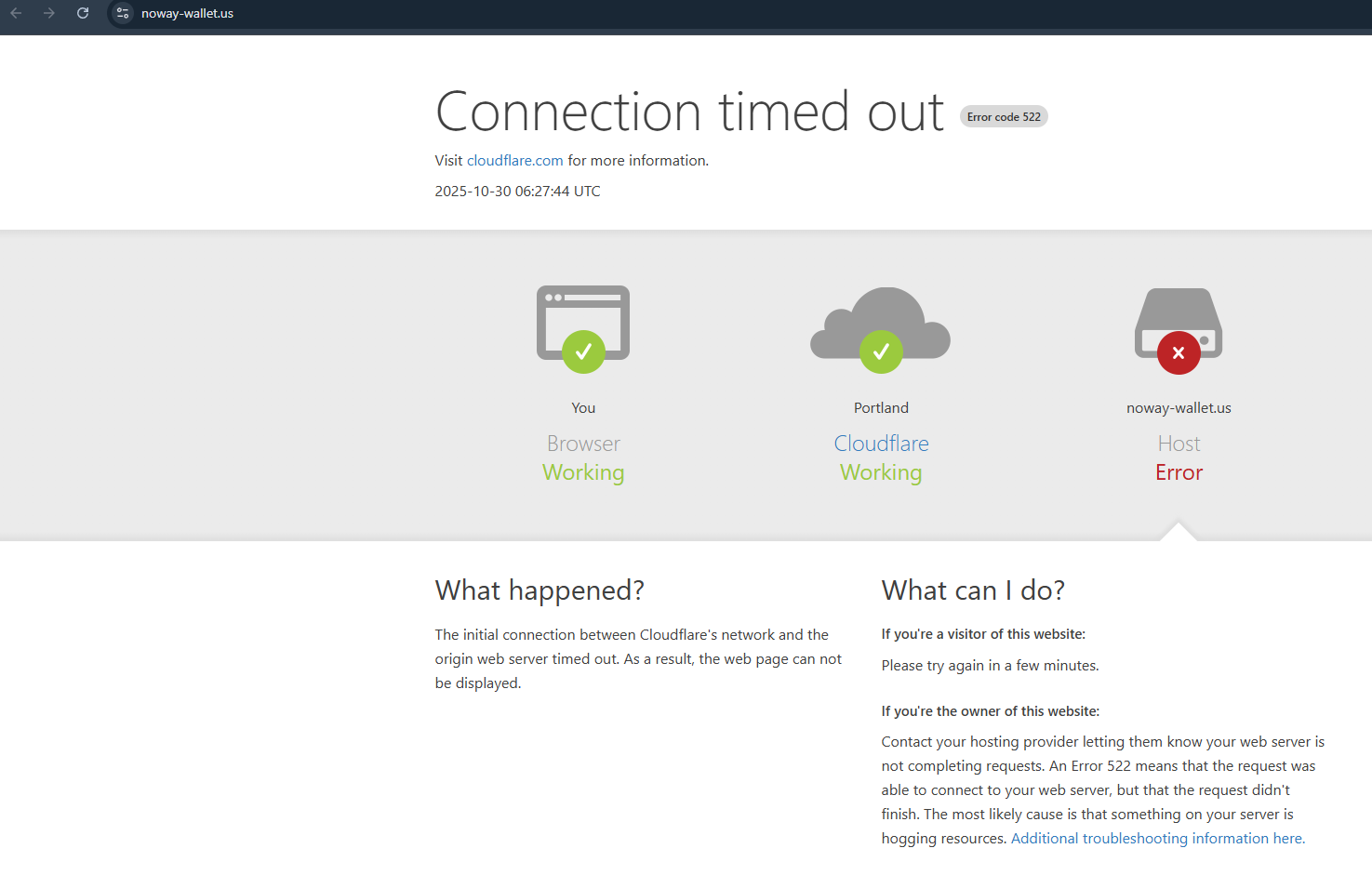 Узнать подробнее о проекте можно было только на сайте noway wallet us, но в октябре 2025 года он не открывается, так как был отключен от сервера. Ограничения не связаны с регионами, из которых идет сигнал клиента или другими ограничениями, так как, заходя на сайт, мы использовали разные браузеры и VPN-сервисы.