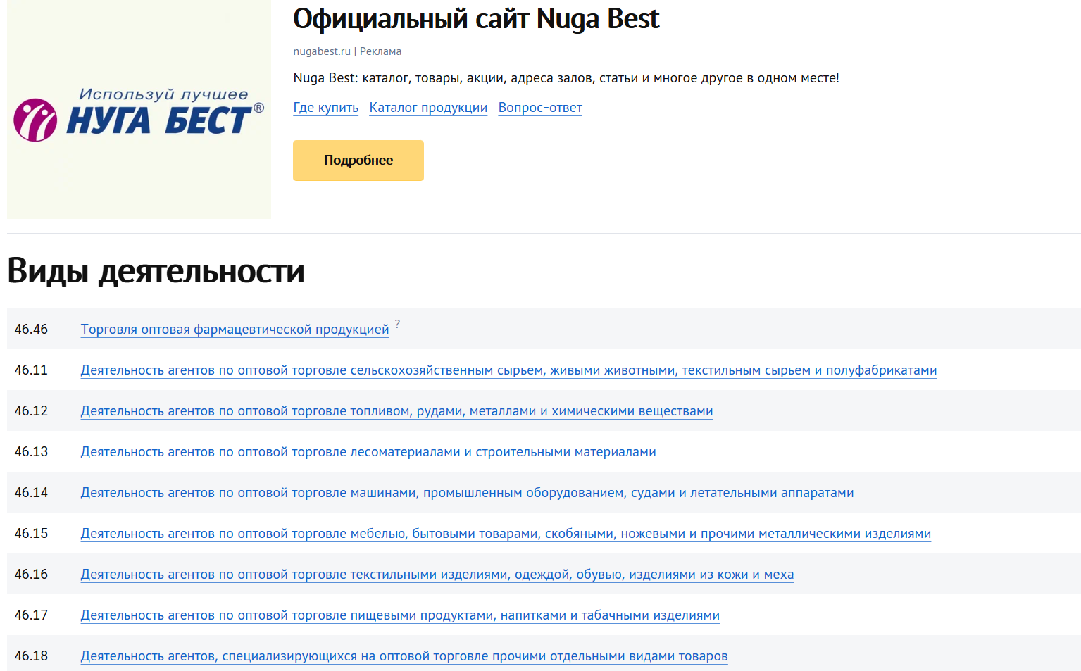Многие пишут, что «Нуга бест» – обман. На территории нашей страны дилеры действую от лица южно-корейской «НУГА МЕДИКАЛ Ко., ЛТД». В России зарегистрирована торговая марка и дочернее предприятие ООО «Нуга бест», которой 56 видов деятельности. Но врачебной и профилактической – нет. Хотя сотрудники фирмы изображают медиков и рекомендуют свои товары как полезные для здоровья и исцеляющие.