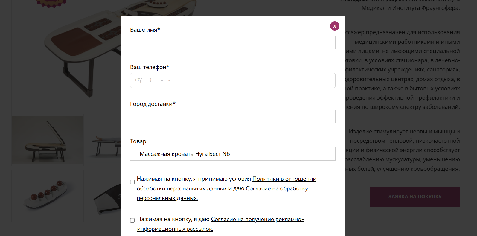 Стоимость массажных кроватей, ковриков и другой продукции посмотреть на Nuga best ru не получится. Чтобы узнать подробности, надо заполнить специальную форму – фактически начать оформлять заказ и поделиться своими персональными данными. Это уловка говорит, что продавцы готовы идти на хитроумные махинации. Также вопрос о товарах можно задать через электронную почту Vopros nugabest ru.