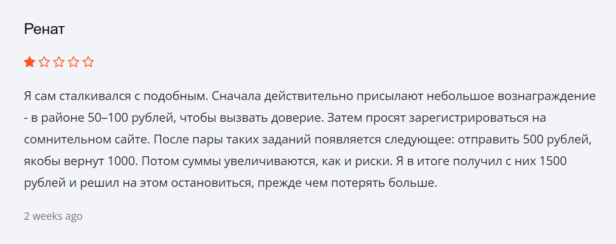 Некоторые исполнители получали минимальные выплаты: таким образом мошенники пытались удержать их в ловушке и подтолкнуть на более серьезные вложения. Если исполнитель решался на покупку дорогого тарифа, в итоге просто тратил деньги в никуда.