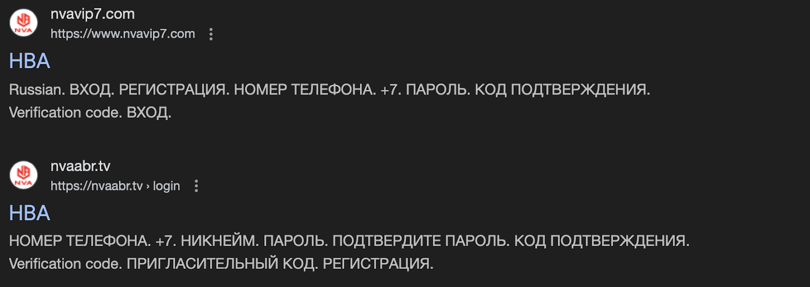В попытке разобраться с историей данного проекта мы выяснили, что сайт имеет несколько дубликатов, включая Nvavip7, но все они отключены. Каждый из сайтов был создан совсем недавно — летом 2025 года. Проработали они недолго и были отключены по неизвестным причинам.
