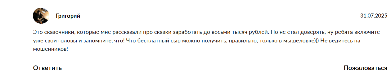 После регистрации личного кабинета пользователь понимал, что реальность слишком далека от обещаний. Доступных заданий почти не было, а кейсы с нормальной оплатой стоили немалых денег. В результате исполнители просто не могли вывести заработанное с платформы: менеджеры требовали оплату комиссии и выдумывали десятки других причин. Сервис, замаскированный под источник «легких денег», на деле оказался типичным лохотроном.