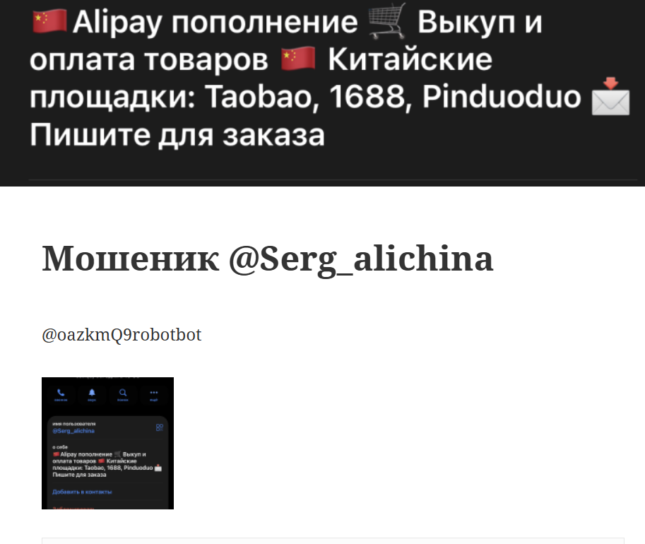 Обзор скам-проекта «Обмен юань Alipay пополнить»: отзывы реальных пользователей и анализ деятельности Serg alichina