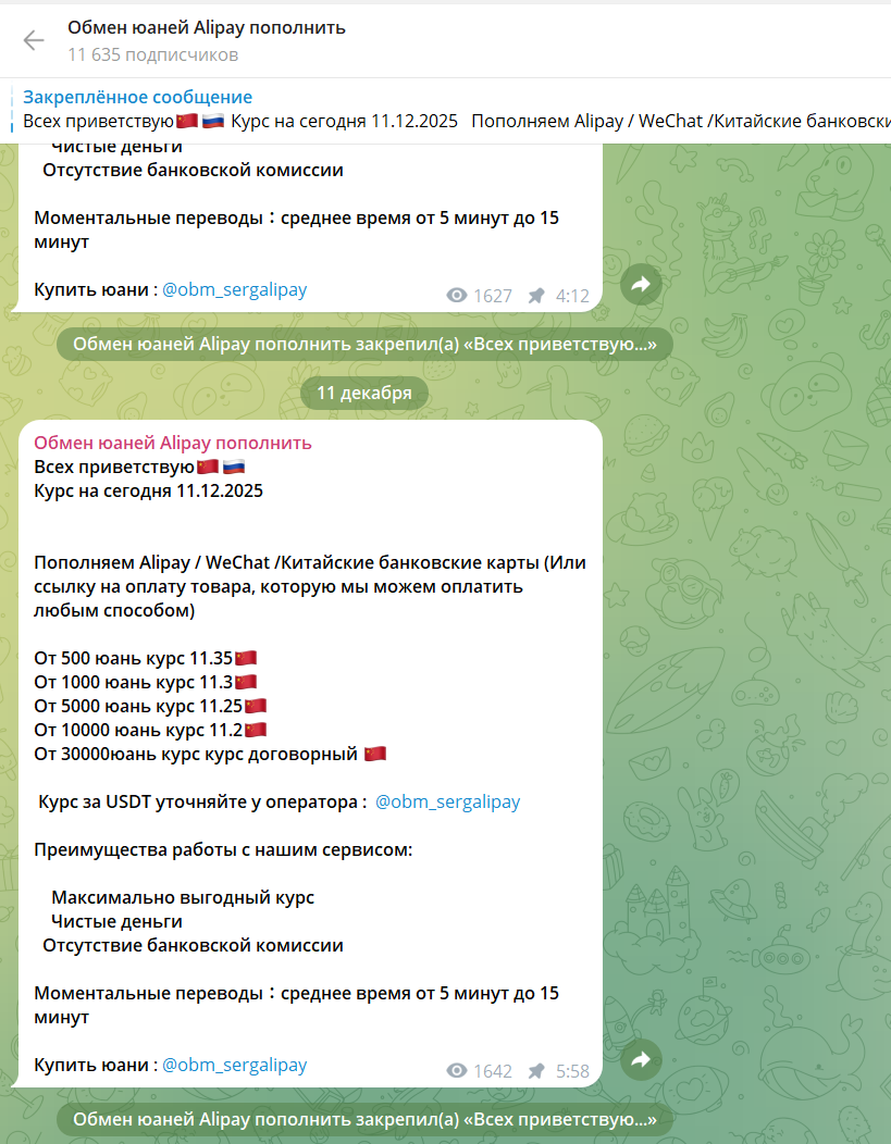 Канал «ОБМЕН АЛИПЕЙ ALIPAY ПОПОЛНИТЬ» – рискованный и сомнительный проект. Мы советуем с ним быть осторожнее.