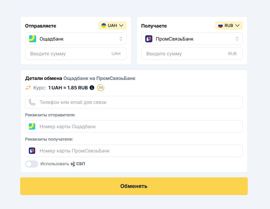 Валюты можно обменять без регистрации личного кабинета. Достаточно связаться с поддержкой через TG-бот либо воспользоваться формой на obmen77 com. Среднее время обмена не превышает 5 минут.