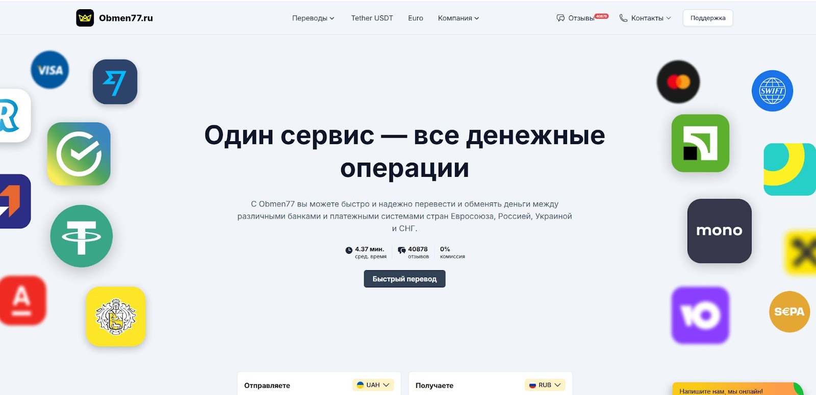 «Обмен 77 ру» – международный криптовалютный сайт обменника, привлекающий внимание широким спектром доступных конвертаций, выгодными курсами и быстрой обработкой заявок. Мнения об этом обменнике неоднозначные, поэтому мы изучим структуру работы «Обмен 77» и оценим его репутацию по отзывам в интернете.