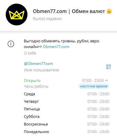 Для связи с компанией вы можете воспользоваться телефоном +7-949-101-77-77. Также доступна электронная почта info obmen77 com и partners obmen77 com. Онлайн-чат на сайте присутствует. Имеется телеграм-бот для оперативного обмена.