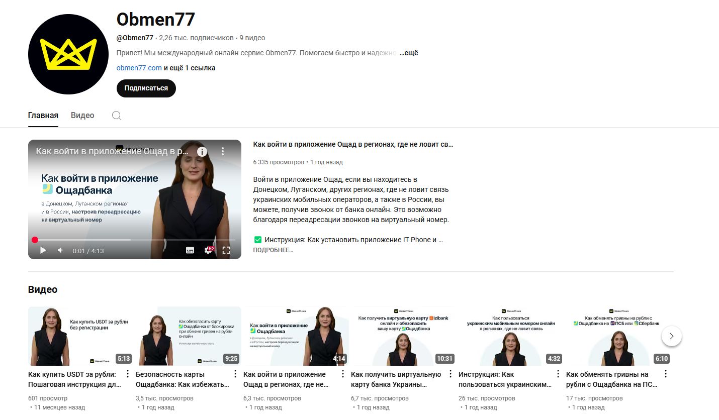 В соцсетях у Obmen 77 невысокий уровень активности. Основным каналом связи является группа во ВКонтакте «I-Обменник Валютный», в которой больше 700 пользователей. В сообществе публикуются важные объявления и новости, однако последний пост датируется июнем 2024 года. Компания выпускает видеоинструкции по использованию сервиса на ютуб-канале Obmen77.