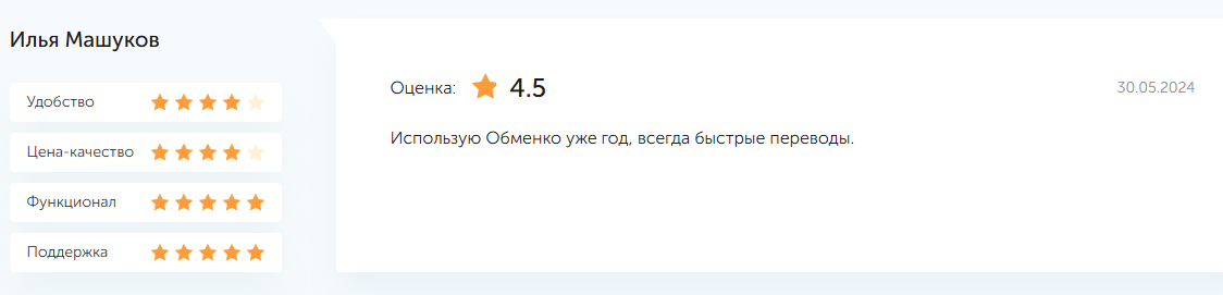 В целом, работа obmenko org оценивается нами неоднозначно. Мы советуем Вам внимательно изучать все отзывы и сравнивать условия Обменко с конкурентами. А также самостоятельно анализировать доступную информацию перед использованием сервиса.