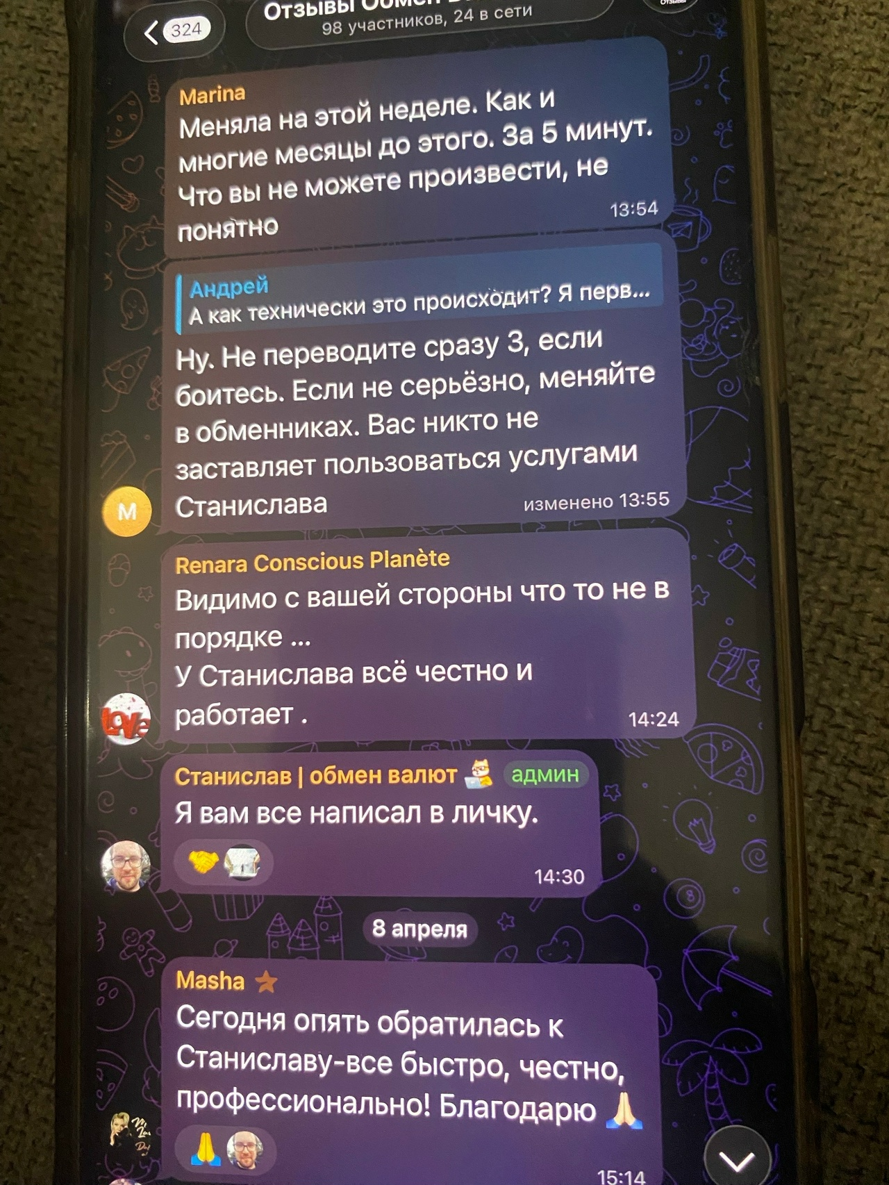 Но в отдельном чате для общения пользователи дают обратную связь на сотрудничество со Станиславом и утверждают, что успешно совершили обмен с его помощью.