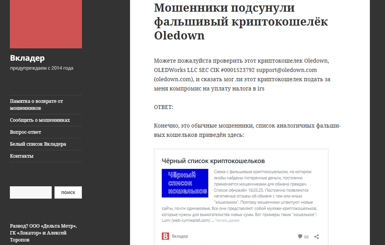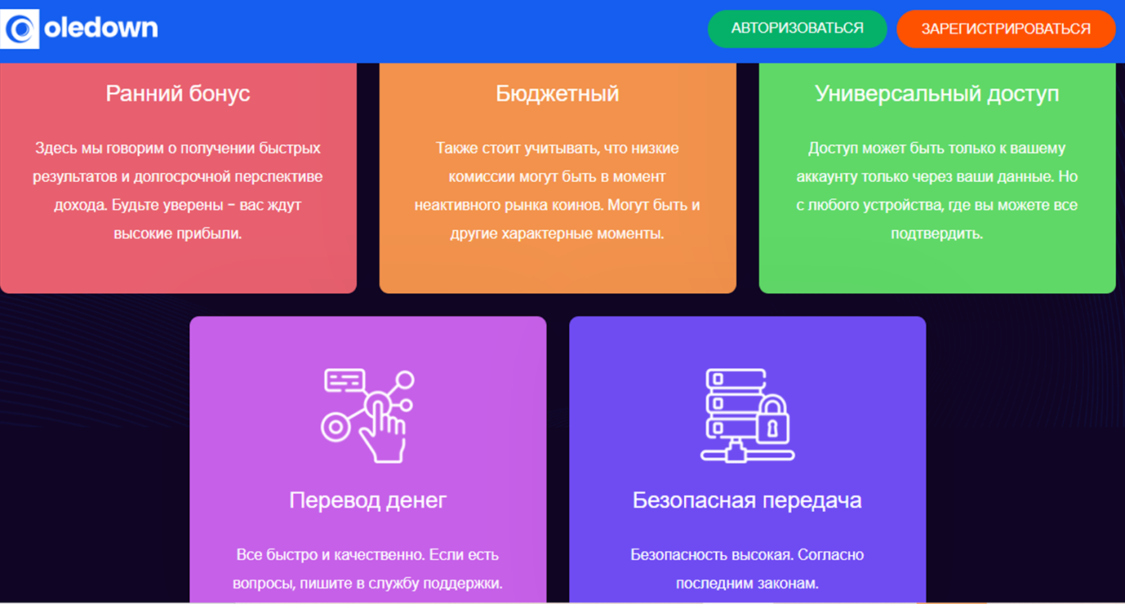 Вероятность, что Oledown мошенническая платформа, огромна. Мы не рекомендуем пользоваться данным кошельком по следующим причинам: