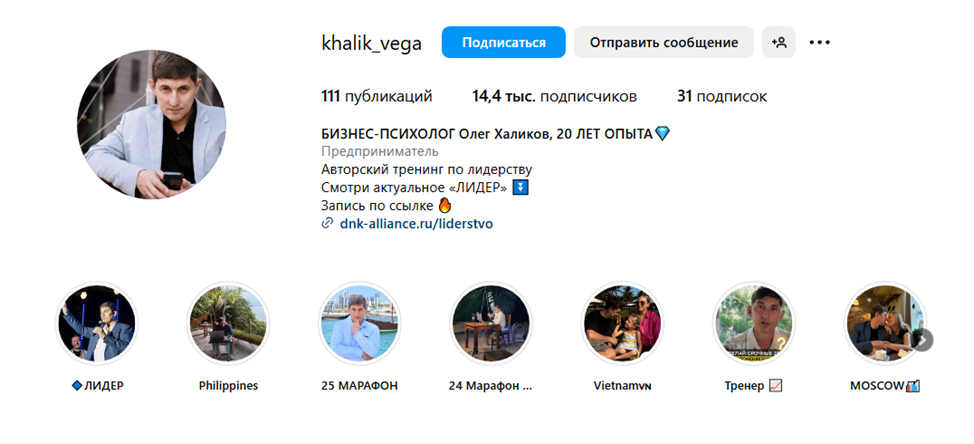 В Телеграме проект “Олег Халиков — Лидерство, финансы” представлен личным аккаунтом Khalikvega. И это нетипично для криптоинвесторов, активно использующих Telegram для продвижения личных идей и привлечения инвесторов.