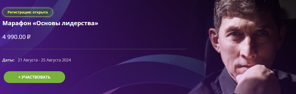 С 21 по 24 августа 2024 года проходил марафон “Основы лидерства”, на который можно попасть всего за 4990 рублей.