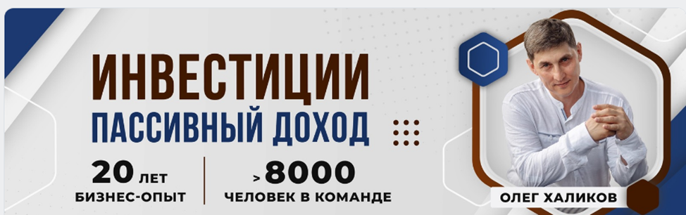 Олег Халиков продвигает себя, как наставника с 20-летним опытом, который не только знает прибыльные и надежные источники пассивного дохода, но и способен изменить психологию клиента, превратив его из неудачника в мега успешного инвестора.