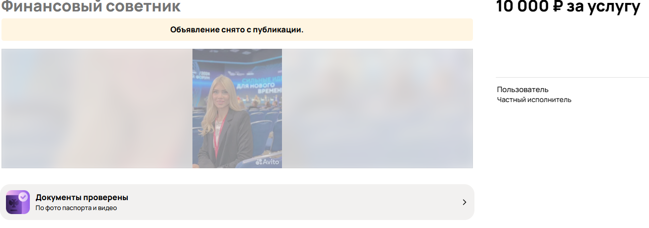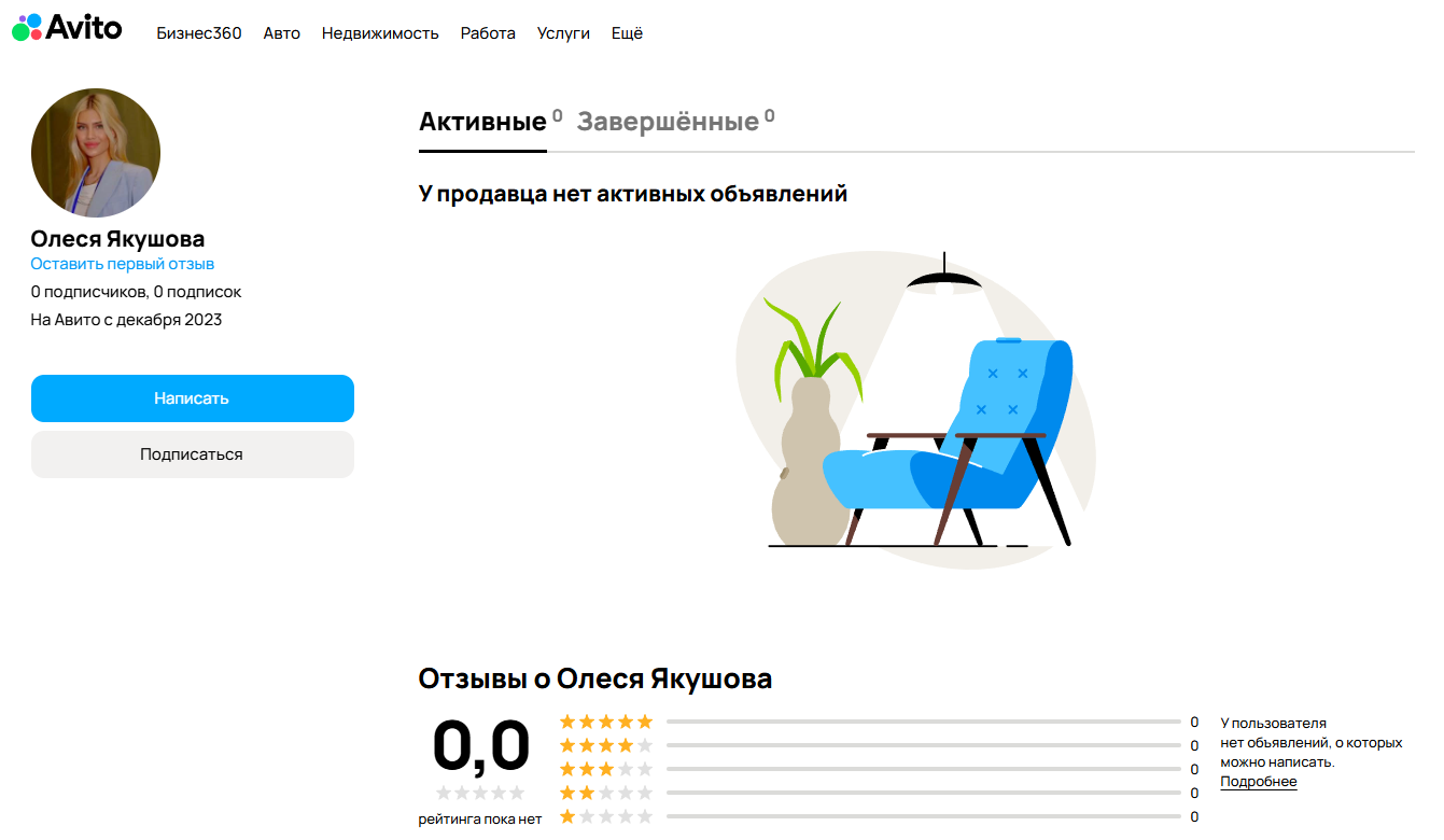 На Авито у девушки также нет отзывов, хотя консультационные услуги она продвигала и через эту платформу: