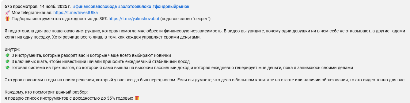 Нельзя сказать, что эксперт Олеся Якушова занимается откровенным разводом аудитории, но и польза программ по инвестированию остается под большим вопросом. По обзору мы обратили внимание на следующие аспекты: