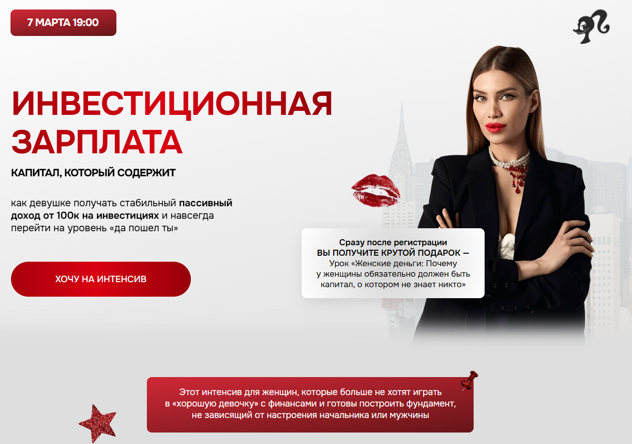 Пользователям предлагаются образовательные курсы, интенсивы по инвестициям. В основном программы рассчитаны на женскую аудиторию.