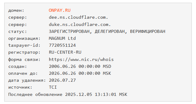 Обзор контактных данных и даты регистрации проекта «Он Пей»