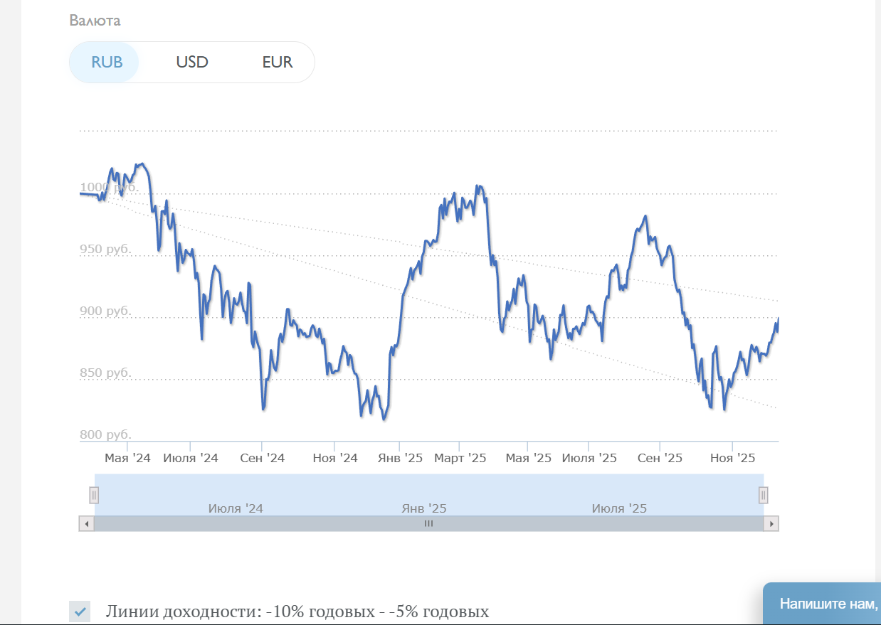 Анализ динамики изменения стоимости пая показывает, что стоимость пая часто меняется. Стабильный рост не наблюдается. Если на момент выпуска цена была 999 рублей за 1 пай, то далее она поднималась выше 1 тысячи рублей, падала до 817 рублей и сейчас составляет около 888 рублей. Поэтому итоговая выгода от инвестирования кажется сомнительной.